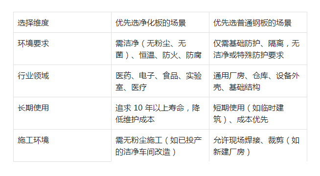 简言之,若场景涉及 “洁净、无菌、高防护(防火 / 防腐)”,且注重长期稳定性与低维护,净化板是唯一选择;若仅需基础隔离、承重,且预算有限、短期使用,普通钢板更适配。