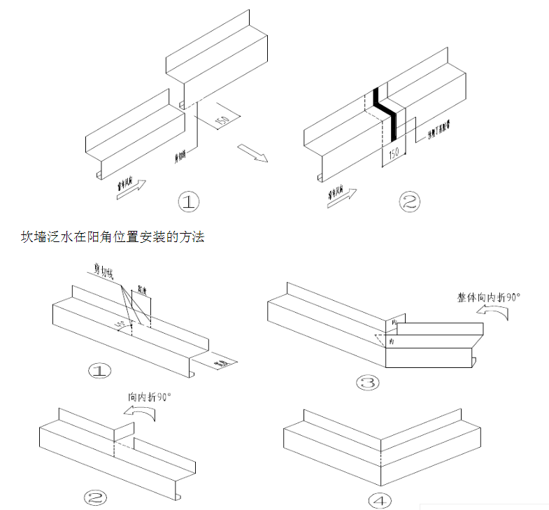 坎墙泛水在阴角位置的安装方法