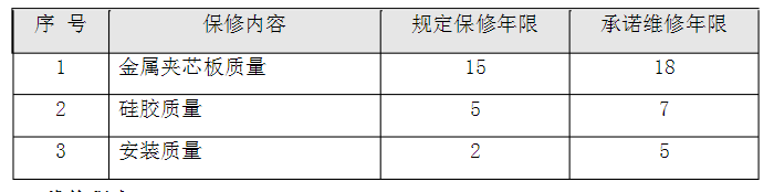 1.2金属外墙工程保修期限: