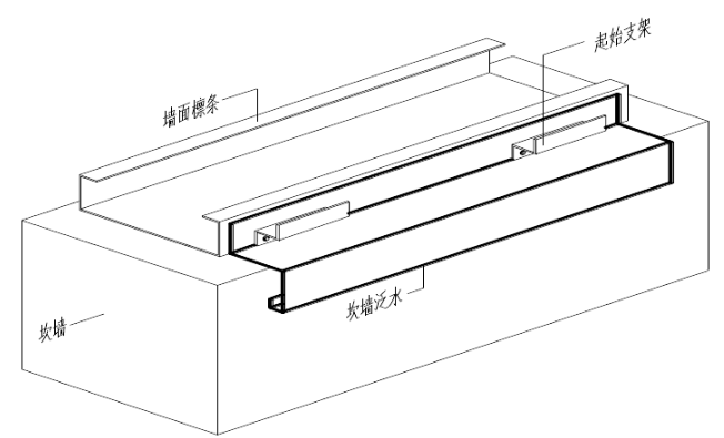 安装的同时如有坎墙泛水件也一同安装完成。确定安装起始标高后,应按起始标高向上每隔5块板画出复检标高线,以备后续安装检查。 详图如下: