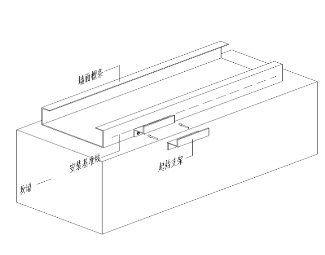 全程必须用保护手套和护镜。为防止接口破坏,不能以接口处作受力点把平板拿起。搬运时不要在物体的表面上拖拉外墙板,也不要将多维外墙板相互之间拖拉,以免损伤面漆。搬运时应避免弯曲。 8、墙面岩棉夹芯板起始支架安装