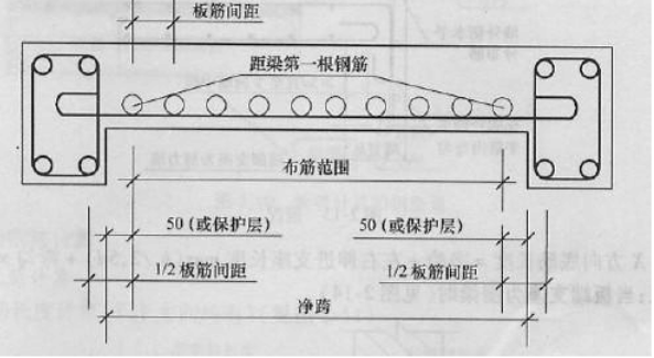 =(净跨+保护层+左梁角筋1/2直径-板筋间距/2+保护层+右梁角筋