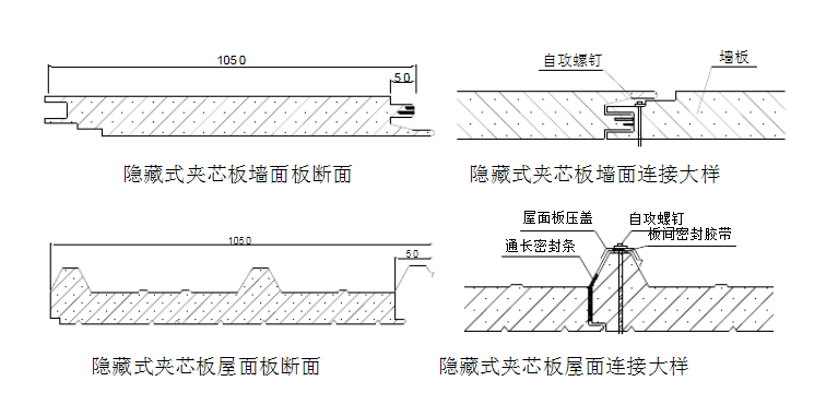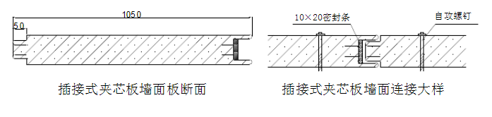 ② 夹芯板系列划分:插接式、隐藏式、搭接式。如图所示: